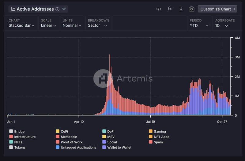 Sui在Meme交易领域有自己的特点。Cetus作为主要的自动做市商,交易机器人多使用PinkPunkBot,而Movepump则像是一个专门的启动平台。这些设施在十月初使得TVL和交易量显著增长,由此可见,这些基础设施对于推动Sui生态发展起到了显著的促进作用。