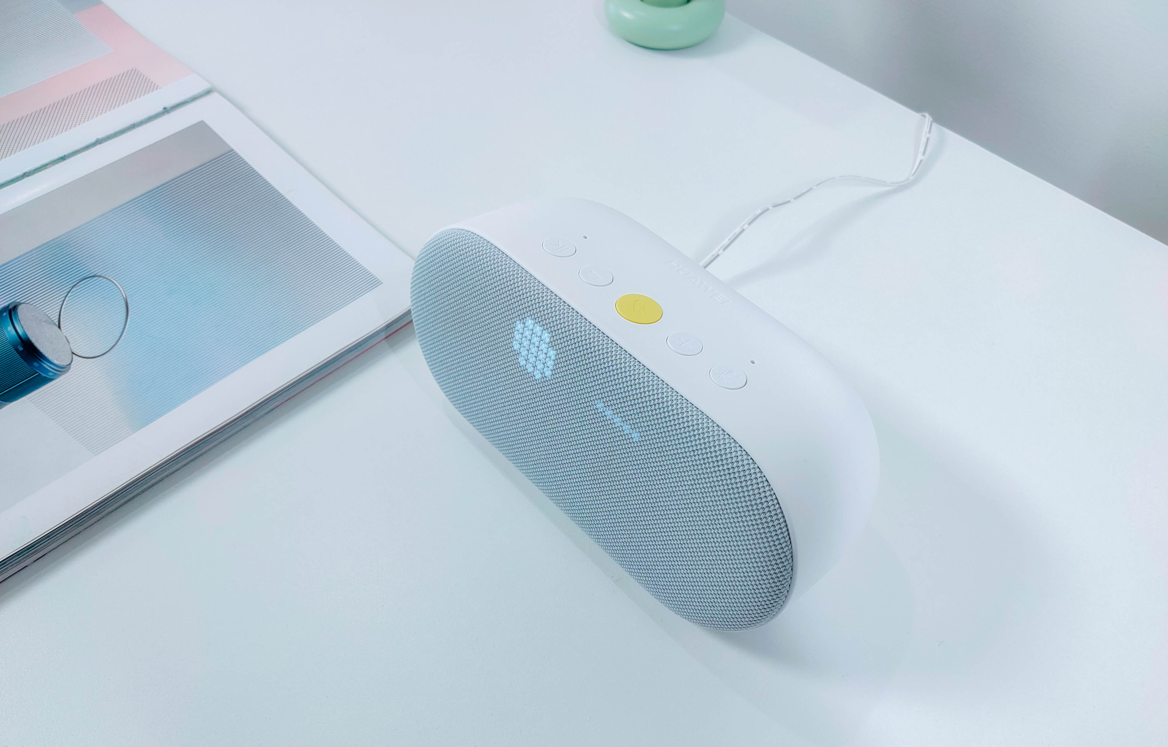 华为的AI音箱2e,其灯阵设计别具一格。在正常情况下,那排白色的LED灯会展示时间信息;而在播放音乐时,它们则呈现音乐波形图。一旦用户与音箱互动,灯阵便能够自动变换成各种表情,就像一个活泼可爱的Q萌机器人,既生动又迷人。
