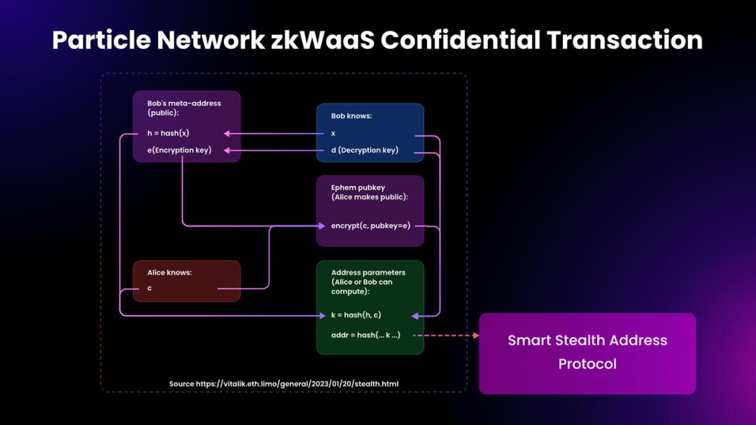 原始的地址隐私保护措施,若用户拥有众多地址,便加大了管理难度。尽管Vitalik提出的Stealth Address方法有所改进,但仍有改进空间。在此基础上,Particle Network推出的zkWaaS提出了Smart Stealth Address方案。