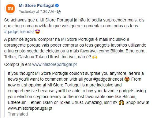 区块链与加密货币行业资讯网站 U.Today 表示,小米在葡萄牙的这家官方零售商采取了新行动,开始接受加密货币支付。用户在社交媒体上看到了其官方发布的消息,能够凭借比特币、以太坊等加密货币去购买小米的多种设备,像智能手机、吸尘器等。此消息传出后,很...