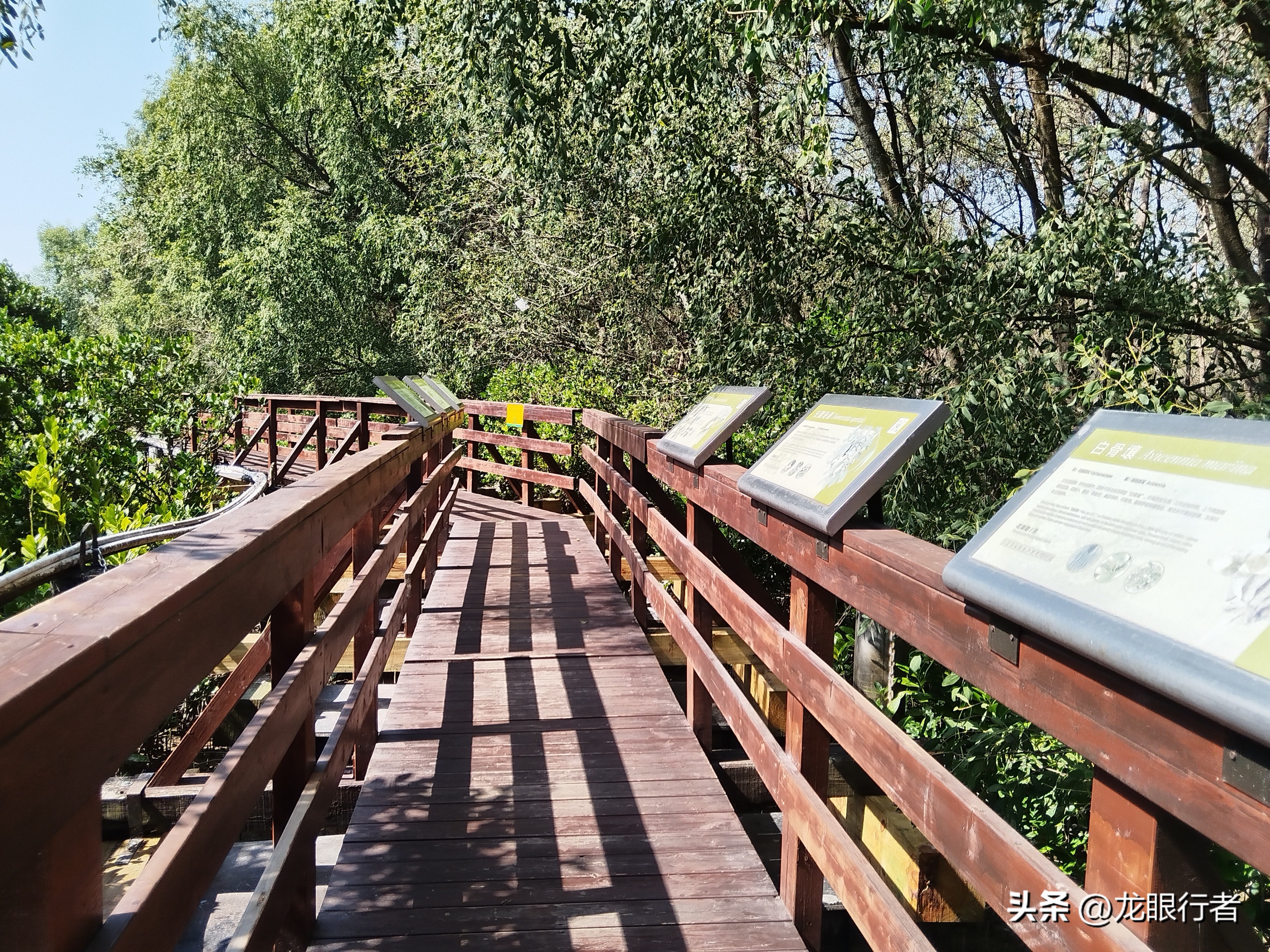 保护区内有几处栈道隐匿于红树林深处。走在栈道上,周围环绕着繁茂的红树林,耳边伴随着海潮的涨落声。栈道旁摆放着介绍红树林和鸟类知识的图文资料,每走几步就能驻足阅读,收获丰富的科普信息。